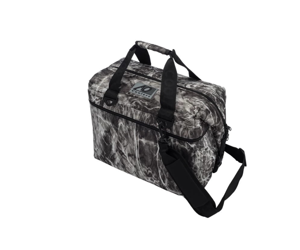 AO Coolers Mossy Oak Elements is perfect for your fishing and outdoor adventure. The Elements pattern is licensed by Mossy Oak and is a digitally enhanced 3D photo-realism that produces lifelike recreation of the natural environment. AO Coolers are guaranteed to never leak or sweat and have twice the insulation of other soft-sided coolers. The inner insulation is 3/4 in. thick, high-density, closed-cell foam. Our high-quality eco-friendly TPU liner is resilient to impacts, abrasions, tears, weather, and more. The combination creates a cooler that will hold ice for 24 hours in 100° heat. The soft exterior won’t scratch up your gel coat or tear up any upholstery. The cooler will lay flat when not in use. It features a removable shoulder strap, clip-down ends, and a side pocket for dry items.