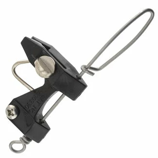 The RC95 Downrigger Release clip can be used for a kite line or a downrigger. The clip simply threads on the downrigger or kite line and held in position with a barrel swivel, crimped sleeve, split shot, or even a simple knot in the line. Made of nylon, brass and stainless steel.
