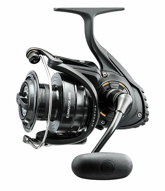 The attractive yet durable Anodized Finish is scratch and corrosion-resistant. The Air Rotor design is 15-percent lighter yet more precisely balanced than competing reels. The stout Aluminum Spool can carry the increased pressures of braided line and houses buttery smooth, long-lasting Felt Drags. Slide-in handle for easy left or right-hand crank conversion. Suitable for fresh and saltwater applications. If you are looking for a high-quality line of workhorse-like reels at a smart price, then you owe yourself a look at the ELIMINATOR SERIES SPINNING REELS.