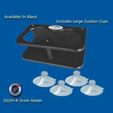 Need a marine grade drink holder that mounts on vertical or horizontal surface? This cup holder is designed with that versatility in mind. Constructed of marine-grade polymer this drink holder fits cans and bottles in “Coozie” type insulators, handled mugs, bottled water of many types and sizes, will also accommodate most binoculars. Pre-drilled on back and bottom for four 2″ suction cups (included) for side or surface mount. May also be permanently attached. Lifetime warranty.