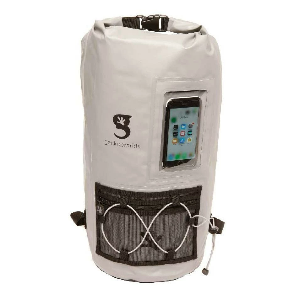 This backpack features a 20L capacity, durable pvc tarpaulin material and a sleeve to store and still use your phone. Have easy access to gear with the outside mesh zip pocket and bungee cords.