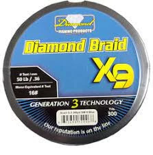 With a revolutionary 9-carrier construction, Diamond Braid Generation III X9 Braided Line enhances braided line performance thanks to industry leading manufacturing processes. Diamond Braid X9 features a centrally located spectra fiber in which the additional 8 carriers are weaved around. This unique braiding process creates a much rounder profile and eliminates flattening of the braid, which allows for heightened castability, more effective line management, and enhanced abrasion resistance. Featuring a new color lock technology, Gen 3 X9 Diamond Braid resists color fading and bleeding, and is guaranteed to maintain its color longer than the competition. Available in a wide range of tensile strengths and colors, Diamond Braid Gen 3 X9 is perfect for any braided line fishing application including casting on light spinning gear, bottom fishing over structure, deep dropping, inshore and offshore trolling, and much more.