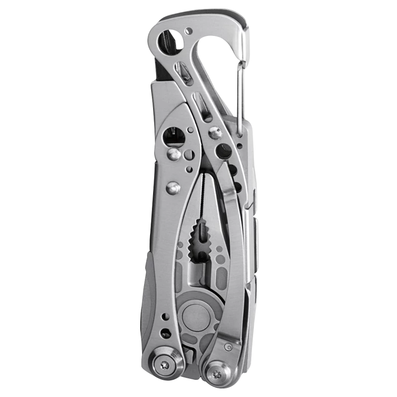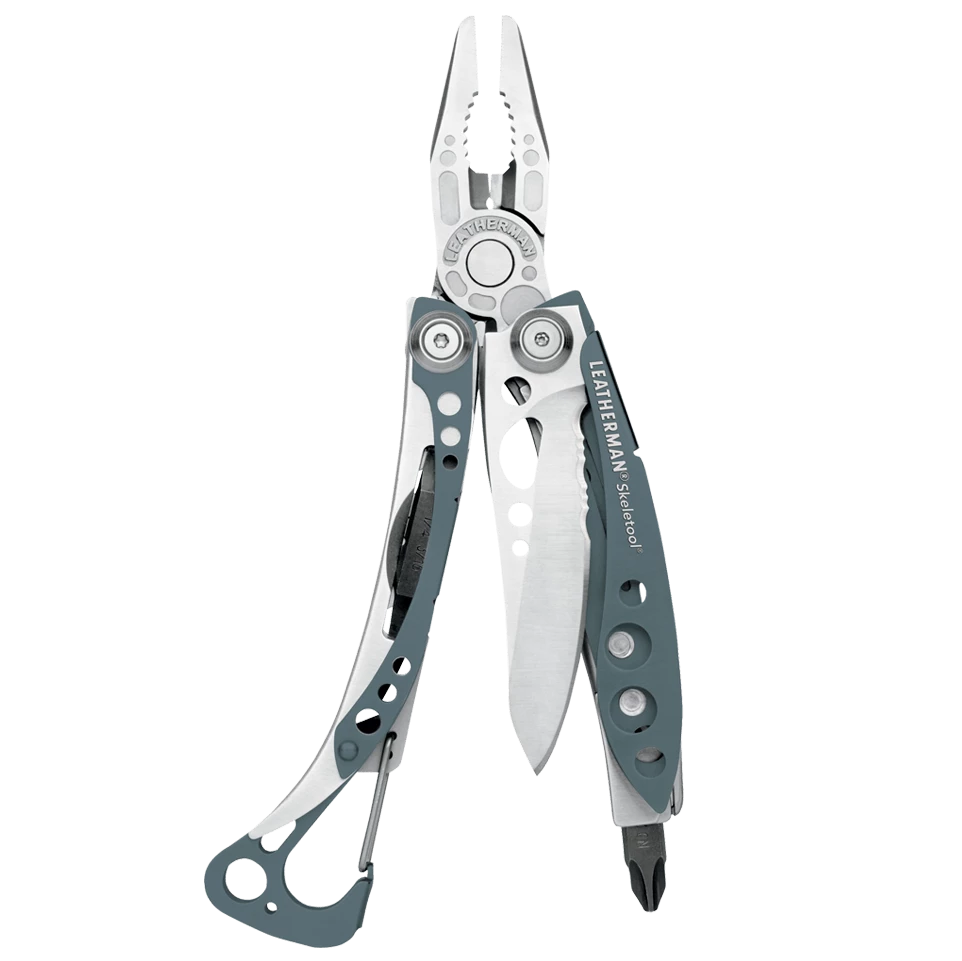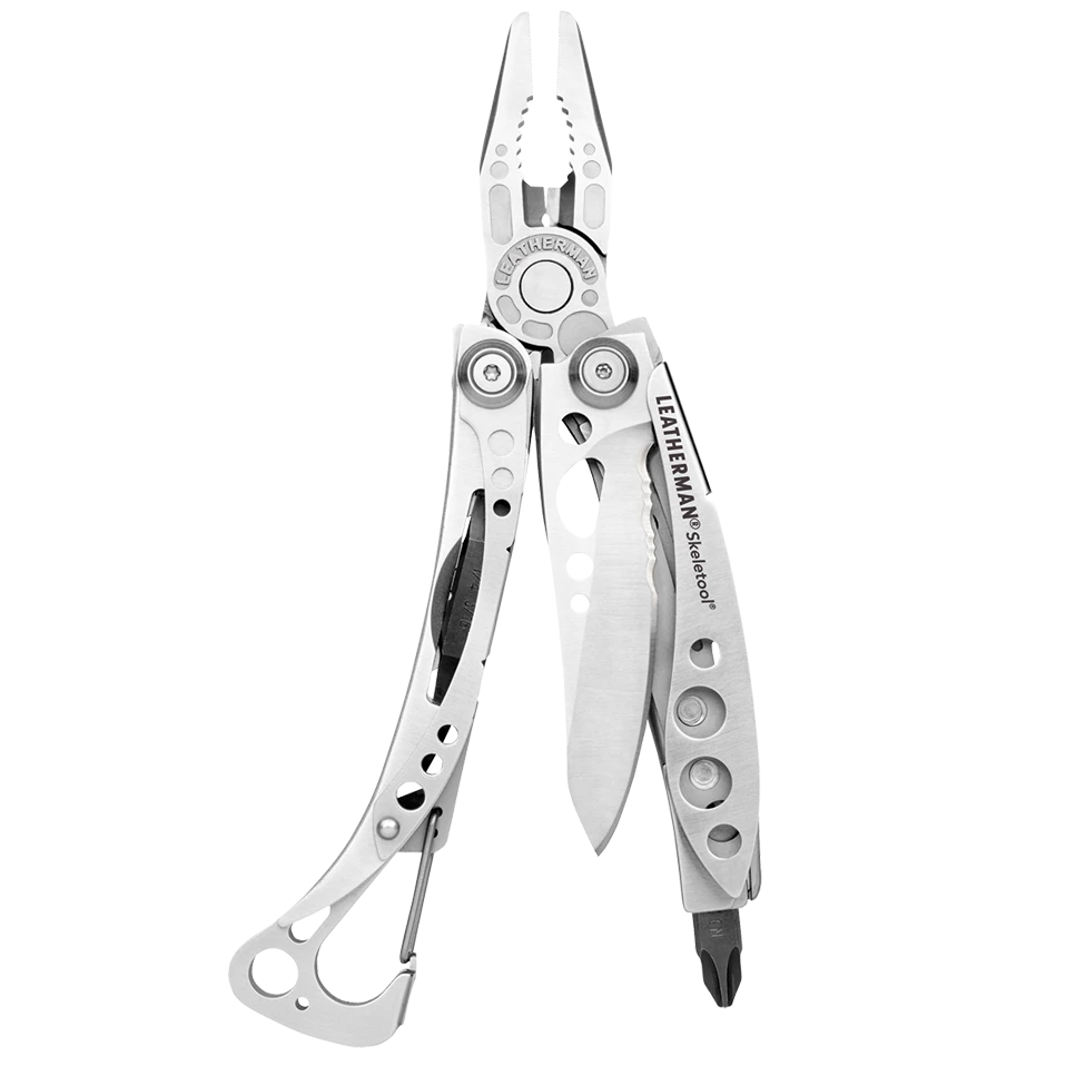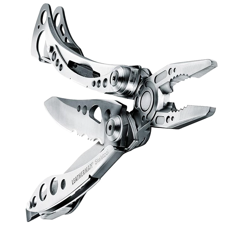At a mere five ounces, the Leatherman Skeletool has a stainless steel combo blade, pliers, bit driver, removable pocket clip and carabiner/bottle opener. The Skeletool is just what you need in one good lookin’ package.