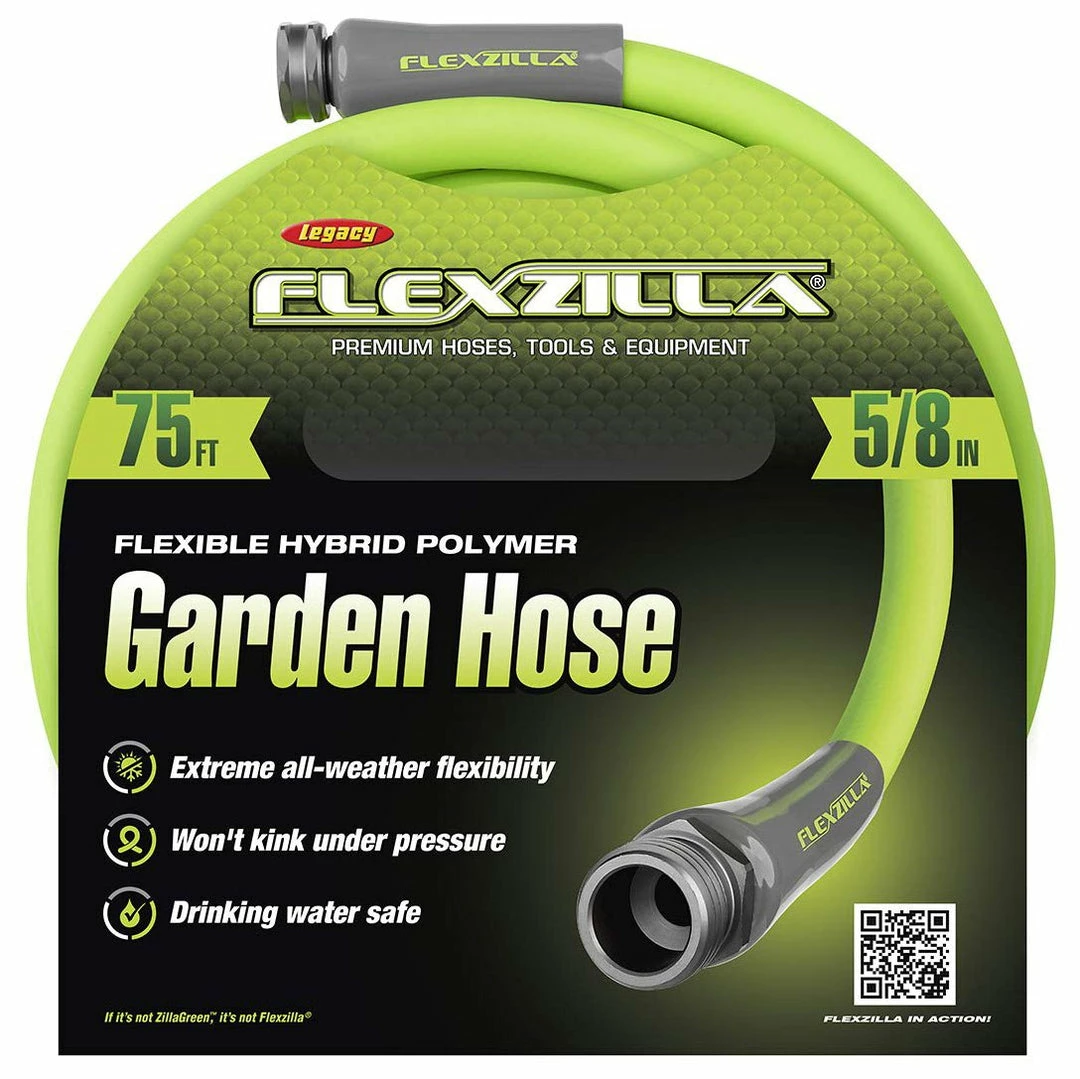 Flexzilla® Garden Hose was engineered with a lightweight Flexible Hybrid Polymer to lie flat and eliminate kinking under pressure. It redefines flexibility, making it easy to maneuver around trees, bushes or other obstacles. Zero memory means your sprinkler stays put without twisting. And Flexzilla Garden Hose doesn’t fight you when you coil it. Plus, with our superior O-ring you get a long-term, leak-free connection at the spigot. The Flexible Hybrid Polymer inner tube material is drinking water safe. (Limited Lifetime Warranty