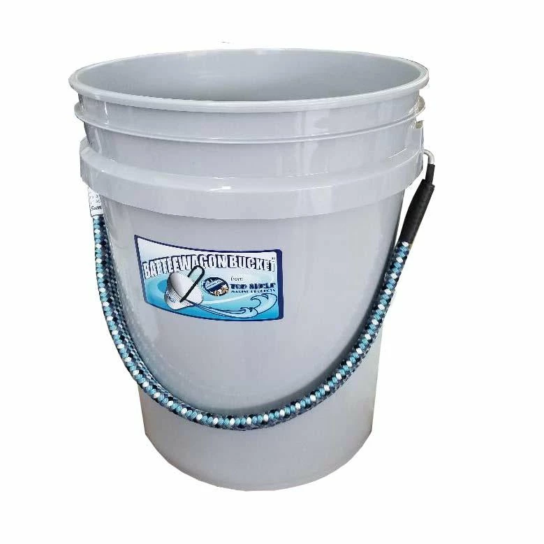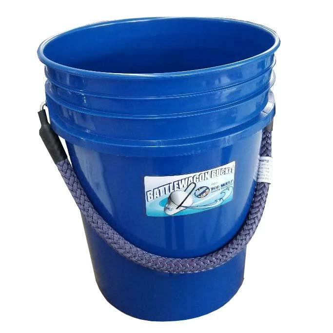 The Battlewagon No-Hole Bucket won’t leak when carried by its comfortable, 5/8 inch 12 strand nylon rope. Battlewagon Bucket is more than a 5 gallon bucket. It is a multi-purpose, extra heavy duty marine material lugging machine.