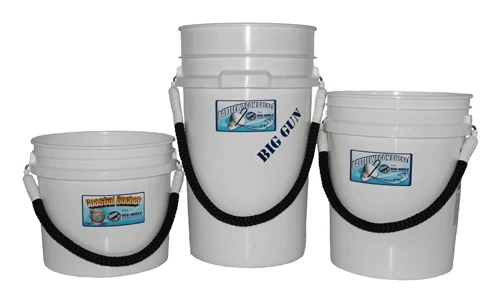 Every bucket has a duty. Every serious sportfisherman or “battlewagon” has a bucket and each bucket has probably had its wire handle replaced with a piece of dockline. The problem with these homemade buckets is that the large holes drilled for the rope allow liquid or chum to slosh out or leak while the knots on the rope won’t allow the buckets to stack or “nest” properly. Space is always at a premium on a boat, and these buckets are specially designed with storage and functionality in mind.